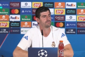 全文摘要:皇马门将库尔图瓦在赛前发布会上谈及欧冠对尤文、个人300场里程碑,并回应了拉波尔塔的“白手套”言论,直指其为篡改联赛。他力挺遭针对的队友维尼修斯,认为其回应正常且出色,同时强调球队备战国家德比的决心。