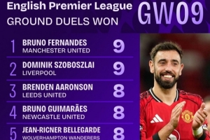 全文摘要:英超第9轮地面对抗数据出炉,曼联队长B费以9次成功对抗高居榜首,利物浦的索博斯洛伊以8次紧随其后。共有8名球员以8次成功对抗并列第二,其中包括纽卡、狼队、埃弗顿等队的球员。