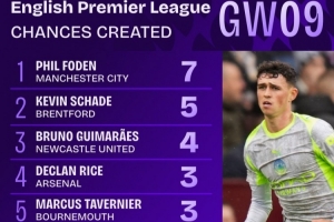 全文摘要:英超第9轮战罢,Squawka数据显示,曼城球员福登以7次创造机会位列榜首,成为本轮机会创造王。布伦特福德的沙德以5次次之,纽卡的吉马良斯以4次排名第三。赖斯等7名球员并列创造机会榜第四,均为3次。