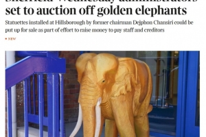 全文摘要:谢周三俱乐部为筹集资金,将拍卖前主席钱西里的两尊金象雕像。俱乐部深陷1.14亿英镑债务,托管人正与球场打包寻找买家,已有数家潜在兴趣方。尽管财务困难,球迷消费已超20万英镑,助员工如期领薪,俱乐部亦通过降价门票等方式吸引支持。