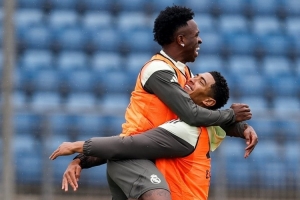 全文摘要:国家德比风波后,皇马更衣室重归平静。维尼修斯自被换下并道歉后,首次在训练中与贝林厄姆亲密相拥,笑容满面,气氛融洽。此景被视为球队团结的象征,皇马将迎来对阵瓦伦西亚的比赛。