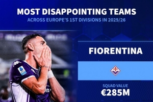 全文摘要:德国转会市场盘点了本赛季欧洲足坛最令人失望的球队。这些俱乐部普遍存在高价低能的情况,如身价高达7.52亿欧的纽卡仅排联赛第13,身价3.7亿欧的毕尔巴鄂竞技排名第11。佛罗伦萨、赫罗纳、诺丁汉森林等队也因高身价与低排名的巨大反差而上榜。
