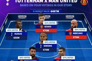 德转会评热刺与曼联阵中球员:B费、舍什科、西蒙斯入选,主帅阿莫林在列