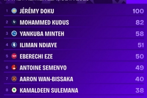 全文摘要:在英超第11轮曼城3-0战胜利物浦的比赛中,多库表现惊艳,他单场完成7次过人并打入1球。据统计,他以100次成功过人成为2025年英超首位达成此里程碑的球员,目前在该项数据上遥遥领先。