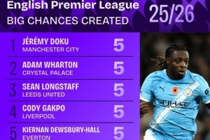 上一篇: 本赛季英超创造机会榜:B费力压格拉利什居首,曼城、利物浦各2人