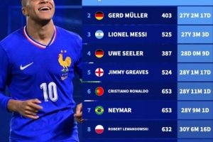 全文摘要:法国球星姆巴佩在对阵乌克兰的世预赛中,以26岁10个月24天的年龄,达成职业生涯400球里程碑,成为史上最年轻的400球球员。他仅用537场比赛便完成此壮举,在球员达成400球的年龄排名中位列第一。