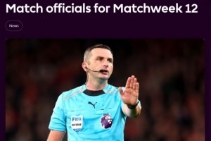 11月24日0:30 阿森纳vs热刺 主裁判:迈克尔-奥利弗 VAR:斯图尔特-阿特维尔