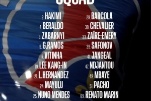 后卫:2-阿什拉夫、4-贝拉尔多、6-扎巴尔尼、21-卢卡斯-埃尔南德斯、25-努诺-门德斯、51-帕乔