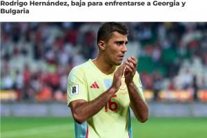 西班牙国家队球员罗德里因伤落选本期大名单,将无法参加在埃尔切对阵格鲁吉亚及在巴利亚多利德对阵保加利亚的两场2026年世界杯预选赛。本周日布伦特福德对阵曼城的比赛中该球员被替换下场后,其所属俱乐部向西班牙皇家足球协会医疗部门提交的体检报告确认了伤情。