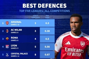 全文摘要:根据德国转会市场统计,本赛季五大联赛球队场均丢球榜出炉。阿森纳以场均仅丢0.3球高居榜首,AC米兰以0.38球紧随其后。罗马、里昂等球队也跻身榜单前列,展现了各队稳固的防守实力。