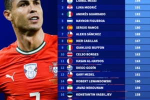 全文摘要:德国转会市场盘点新世纪国家队出场数,C罗以223场居首,梅西194场、莫德里奇191分列二、三位。该榜单收录了拉莫斯、布冯等名将的出场数据,展现了足坛传奇的 longevity 与国家队生涯的辉煌成就。