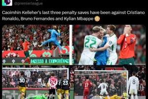 全文摘要:英超官方数据显示,门将凯莱赫近期表现出色,在近三次扑点中,他成功扑出了巨星C罗、B费和姆巴佩的点球。这三次关键扑点分别发生在2025年对爱尔兰、曼联以及2024年对皇马的比赛中,展现了他顶级的扑点能力。
