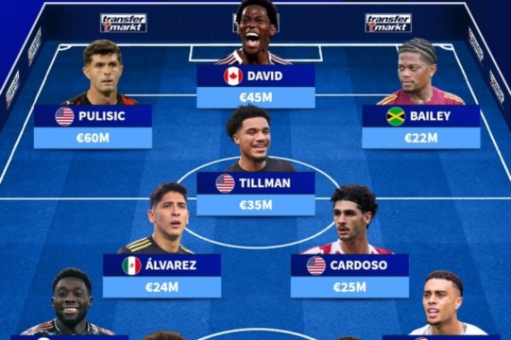全文摘要:德转盘点了中北美及加勒比海足联最贵阵容,总价值3.15亿欧元。美国边锋普利西奇以6000万欧身价居首,加拿大后卫阿方索-戴维斯以5000万欧次之。该阵容包含门将1人、后卫4人、中场3人和前锋3人,均为该地区顶级球员。
